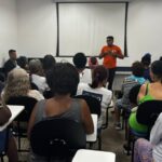 A gerente da Clínica da Família Dr. Felippe Cardoso (CFFC), Bruna Caroline, esteve reunida com os Agentes Comunitários de Saúde (ACS) da unidade no auditório