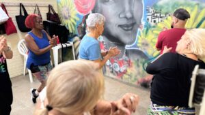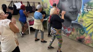 Nossos idosos colocaram o corpo em movimento ao som do charme, numa aula cheia de energia e leveza. Dançar faz bem pro corpo, pra mente e pro coração. Aqui, envelhecer é sinônimo de viver com alegria! A dança e o charme estimulam a coordenação motora, equilíbrio, lateralidade, memória e socialização. É uma atividade de esforço leve a moderado.