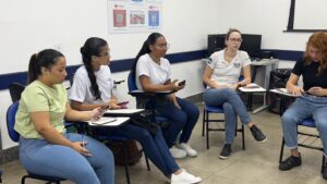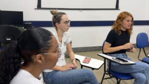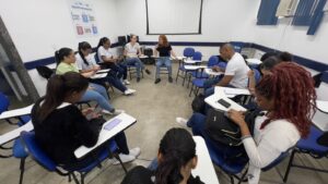 A preceptora Larissa Dantas, da Universidade Federal do Rio de Janeiro (UFRJ), reuniu os alunos do 1º período de Enfermagem para a aula de Práticas e Cuidados de Enfermagem II (PCE II). A aula foi realizada nesta sexta-feira, dia 29 de Agosto de 2025, no Auditório da OTICS-Rio Penha.