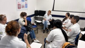 A preceptora Larissa Dantas realizou a aula com as turmas do Programa Curricular Interdepartamental (PCI XI), nesta segunda-feira, 15 de Setembro, no auditório da OTICS-Rio Penha.