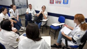Os alunos do PCI XI, da Escola de Enfermagem Anna Nery da Universidade Federal do Rio de Janeiro (UFRJ), acompanharam atendimentos com os enfermeiros da Clínica da Família Felippe Cardoso. Nos consultórios das Equipes de Saúde da Família, os estudantes observaram a prática profissional e reforçaram sua formação.