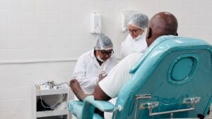A podologia é essencial no tratamento de pacientes diabéticos, amputados e com pé diabético, pois atua na prevenção e cuidado das complicações nos pés, comuns nesses casos. Em diabéticos, a circulação sanguínea comprometida e a neuropatia aumentam o risco de infecções e úlceras. A podologia ajuda a identificar e tratar lesões precocemente, evitando complicações graves, como amputações. Para amputados, o acompanhamento contribui na adaptação da prótese, enquanto no pé diabético, os cuidados regulares garantem a manutenção da saúde dos pés, prevenindo o agravamento das condições.
