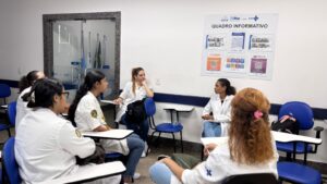 As preceptoras Shirley Linhares e Larissa Dantas realizaram a aula com as turmas do Programa Curricular Interdepartamental XI (PCI XI), nesta segunda-feira, 17 de Novembro de 2025, no auditório da OTICS-Rio Penha.