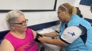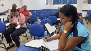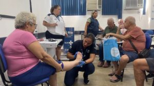 O encontro teve como objetivo orientar e conscientizar os participantes sobre a importância dos cuidados com os pés, prevenindo complicações comuns do diabetes. Durante a palestra, foram abordadas práticas simples e eficazes de higiene, hidratação e observação diária dos pés, fundamentais para a manutenção da saúde e qualidade de vida. A enfermeira fez a avaliação dos pés dos pacientes.
