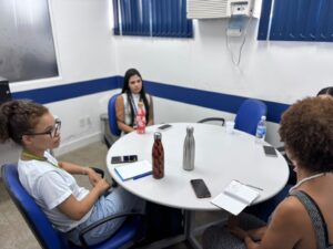 Compõem a equipe: Yasmim Pephilio (Terapia Ocupacional), Ana Luiza de Mello (Psicologia), Raiane de Souza (Serviço Social), Wanessa Soares (Medicina) e a colaboração fundamental da Agente Comunitária de Saúde (ACS) Gilmara Conceição, que aproxima o estudo da realidade local.