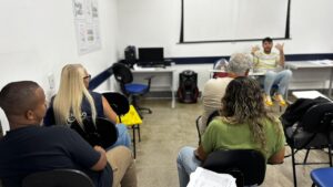 O educador Davi Depret conduziu o encontro, que atualizou profissionais dos Rede de Atenção Psicossocial (RAPS) e dos sistemas prisional e socioeducativo, fortalecendo a rede de atenção e cuidado.