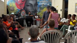 O especialista Kleber Fontes realizou uma aula de percussão, na Casa de Convivência Carmen Miranda, da Secretaria do Envelhecimento Saudável e Qualidade de Vida (SEMESQV), que fica no primeiro andar da Clínica da Família Felippe Cardoso, nesta segunda-feira 23 de Fevereiro de 2026. O evento tem como objetivo desenvolver noções de ritmo de cada instrumento apresentado (afoxé, tantã, pandeiro, surdo e pandeirola) e incentivar os idosos a treinarem em casa.