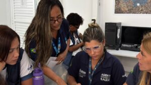 Os Agentes Comunitários de Saúde (ACS), participaram da reunião e informaram se houve alguma modificação no território. A Equipe OTICS-Rio Penha falou da proposta da oficina e a divisão das 6 microáreas por Equipe.