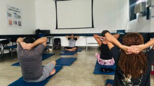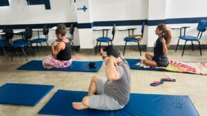 A atividade reúne técnicas de respiração, alongamento, concentração e relaxamento, contribuindo para o equilíbrio entre corpo e mente. Durante a aula, os participantes puderam vivenciar exercícios que auxiliam na redução do estresse e da ansiedade, no alívio de tensões musculares, na melhora da postura, além de promover mais consciência corporal e qualidade de vida. A prática também pode contribuir para a melhora do sono, do humor e da saúde mental.