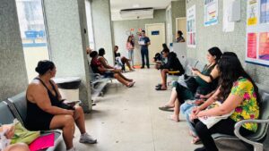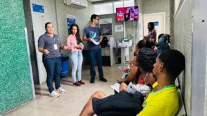 Nesta segunda-feira, 16 de Março de 2026, a equipe e-Multi realizou uma abordagem educativa na Clínica da Família Felippe Cardoso, orientando os usuários sobre gastroenterite, uma inflamação do estômago e do intestino que pode causar sintomas como diarreia, vômitos e dor abdominal.
