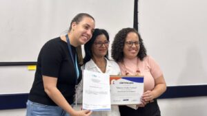 As preceptoras Shirley Linhares e Larissa Dantas realizaram a aula com as turmas do Programa Curricular Interdepartamental XI (PCI XI), nesta segunda-feira, 17 de Novembro de 2025, no auditório da OTICS-Rio Penha.