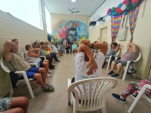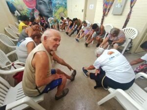 A especialista Nathalia Macedo, realizou uma aula de Pilates com os idosos, na Casa de Convivência Carmen Miranda da Secretaria do Envelhecimento Saudável e Qualidade de Vida (SEMESQV), que fica localizada no primeiro andar da Clínica da Família Felippe Cardoso, nesta sexta-feira 4 de Abril de 2025.
