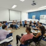 A médica preceptora de Família e Comunidade Joana Bonnet, da Clínica da Família Felippe Cardoso, recepcionando os novos residentes (R1) para as aula do Programa