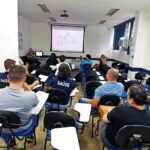 No Auditório da OTICS Penha, nesta quarta-feira 20 de Dezembro de 2023, a Responsável Técnica (RT) de Enfermagem, Julia da Silva e os Agentes Comunitários