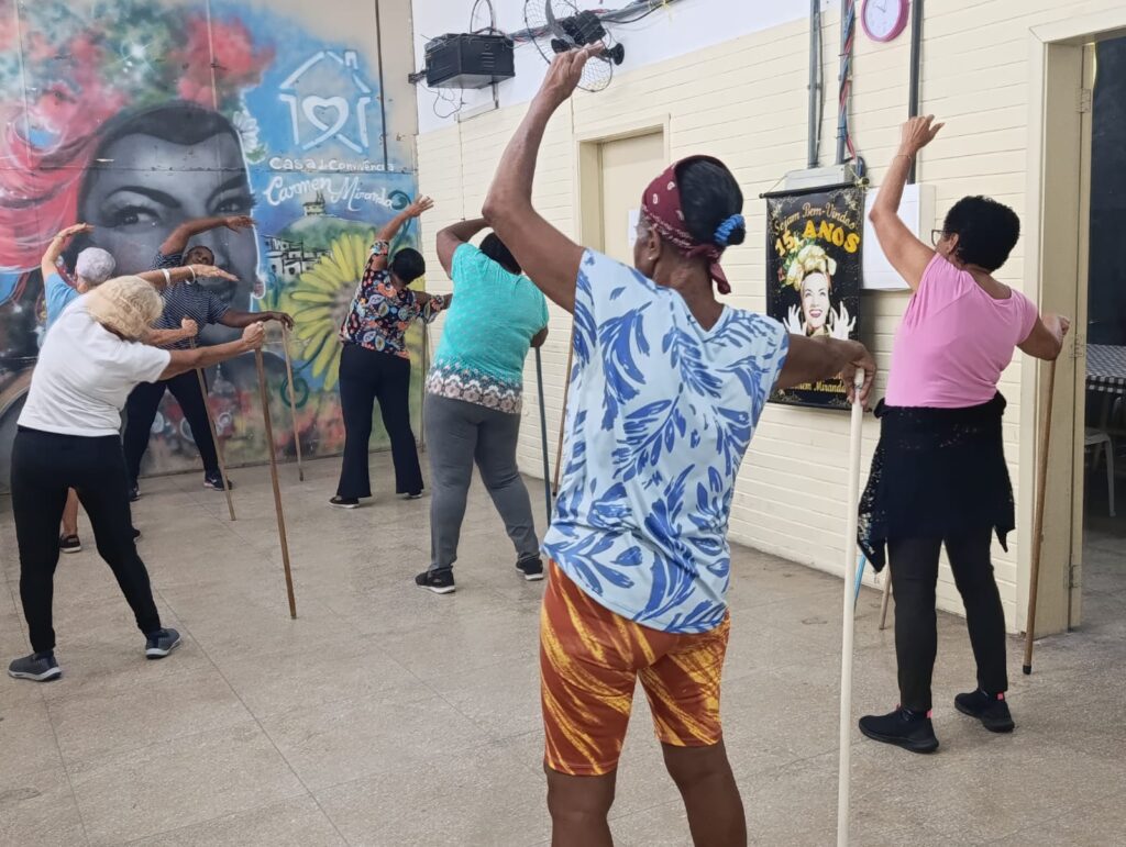 Nesta sexta-feira, 23 de Janeiro de 2026, aconteceu uma atividade de alongamento na Casa de Convivência Carmen Miranda. O espaço pertence à Secretaria do Envelhecimento